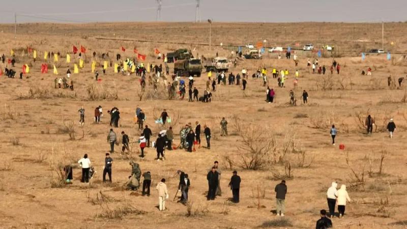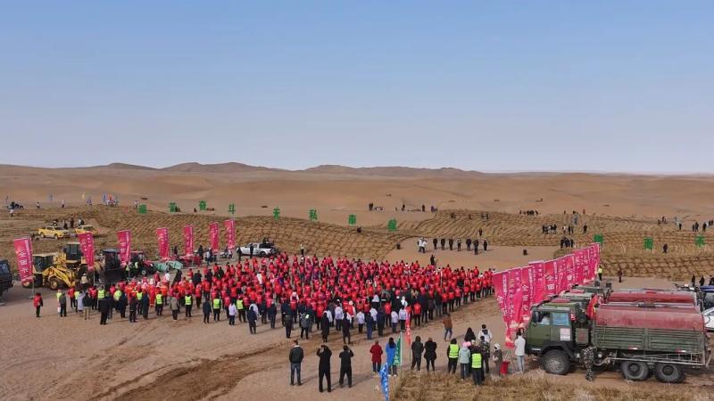 每年春秋兩季,阿拉善盟都會掀起萬人治沙大會戰(zhàn),機(jī)關(guān)干部、部隊(duì)官兵、企業(yè)員工、學(xué)校師生紛紛走向沙漠,揮鍬植綠。45年來,全盟累計(jì)有數(shù)百萬人次參與義務(wù)治沙,社會力量投入資金超過6億元,形成了“政府引導(dǎo)、企業(yè)協(xié)同、農(nóng)牧民參與”的多元共治格局。