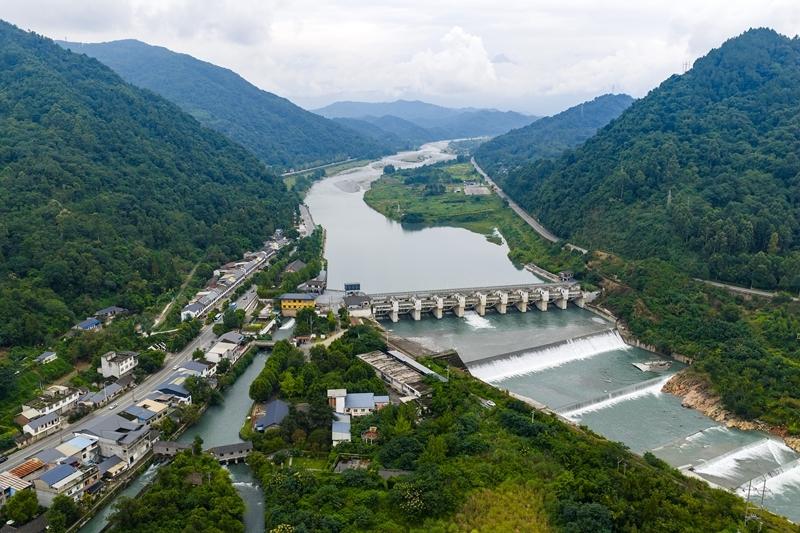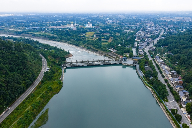 9月10日拍攝的四川彭州湔江堰(無人機照片)。