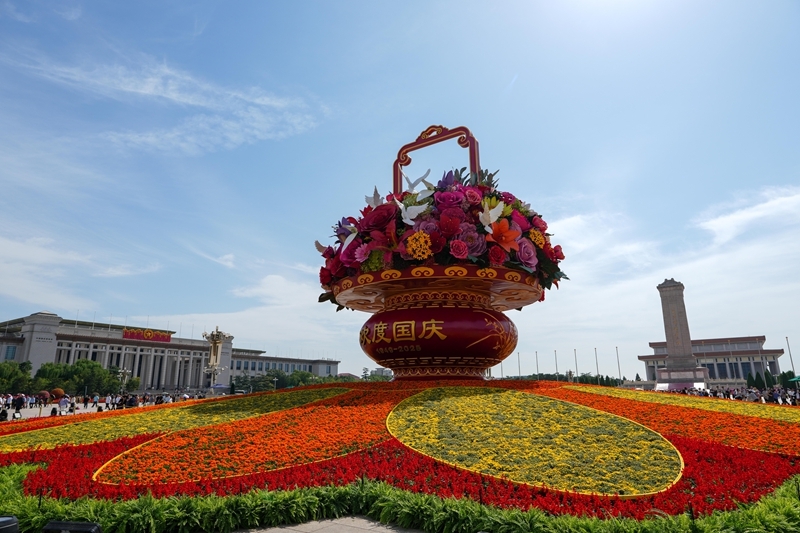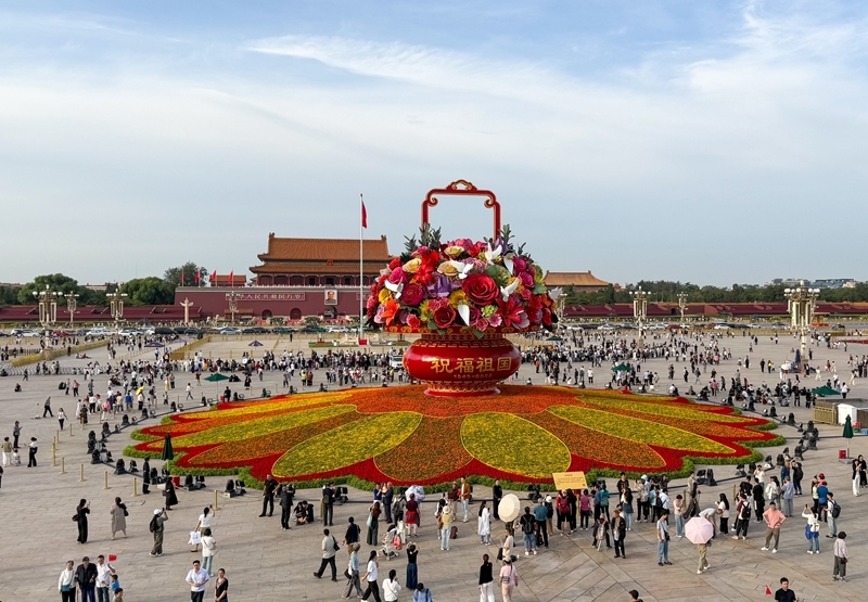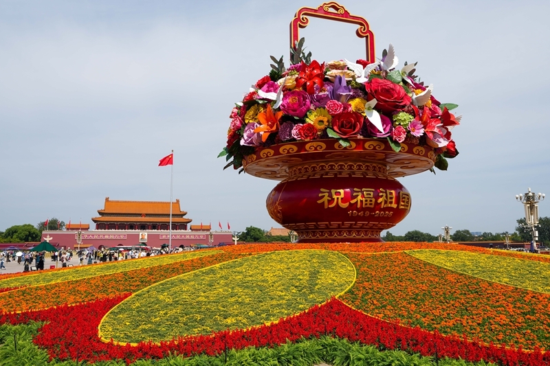 9月25日,2025年“祝福祖國(guó)”巨型花籃正式完工,亮相天安門廣場(chǎng)與市民共度佳節(jié)。今年“祝福祖國(guó)”花壇以喜慶的花籃為主景,花壇頂高18米,籃體高16米,籃盤直徑12米。籃體南側(cè)書寫“祝福祖國(guó)”“1949-2025”字樣,籃體北側(cè)書寫“歡度國(guó)慶”“1949-2025”字樣?;@內(nèi)選取了美好寓意的花卉,其中荷花寓意“和和美美”、橄欖枝寓意“榮耀和平”等,還結(jié)合和平鴿元素,體現(xiàn)“和平發(fā)展、欣欣向榮”。