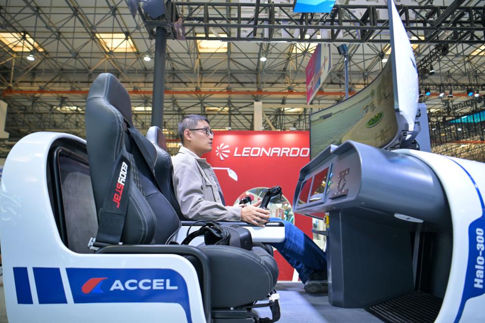 10月16日,觀眾在天津直博會(huì)低空經(jīng)濟(jì)館內(nèi)體驗(yàn)一款eVTOL(電動(dòng)垂直起降飛行器)。新華社記者 趙子碩 攝