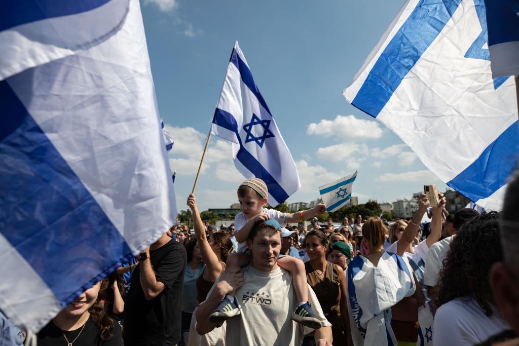 10月13日,人們慶祝搭載獲釋以方被扣押人員的直升機抵達(dá)以色列佩塔提克瓦的一所醫(yī)院。新華社記者陳君清攝