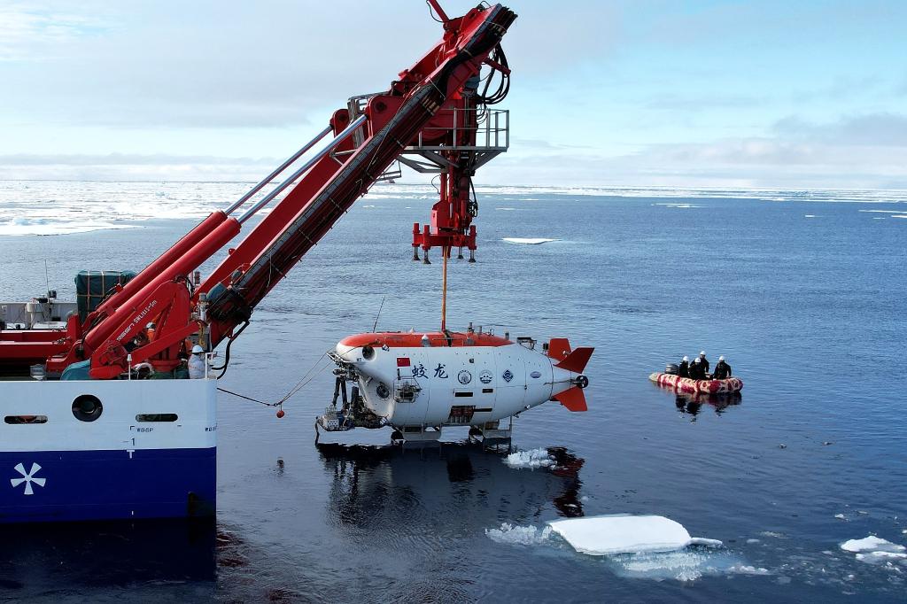 “蛟龍”號(hào)在北極冰區(qū)進(jìn)行下潛。新華社記者劉詩(shī)平 攝