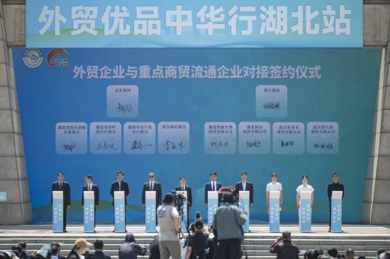 外貿(mào)優(yōu)品中華行湖北站暨“樂購湖北”消費(fèi)季活動26日在武漢市漢口北國際貿(mào)易城啟動?;顒又荚诖蛟斐隹诋a(chǎn)品拓內(nèi)銷的標(biāo)志性平臺,通過系列專題對接活動,助力外貿(mào)企業(yè)開拓國內(nèi)市場,促進(jìn)消費(fèi)升級。啟動儀式現(xiàn)場,京東集團(tuán)、淘天集團(tuán)、武商集團(tuán)、武漢國貿(mào)集團(tuán)等現(xiàn)場與益海嘉里食品營銷有限公司、東莞徐記食品有限公司等外貿(mào)出口企業(yè)簽訂出口轉(zhuǎn)內(nèi)銷采購協(xié)議、合作計(jì)劃,簽約金額145億元,為湖北外貿(mào)企業(yè)拓展內(nèi)需市場注入強(qiáng)勁動力。