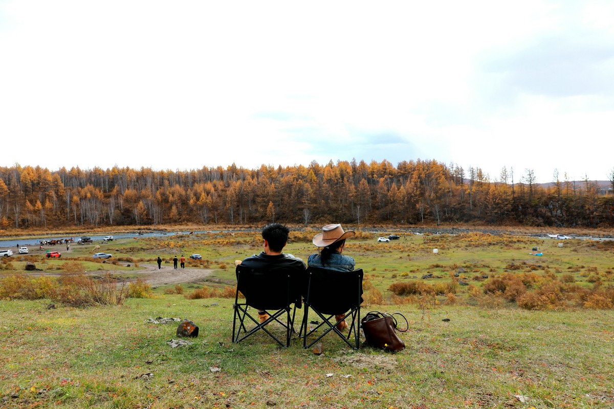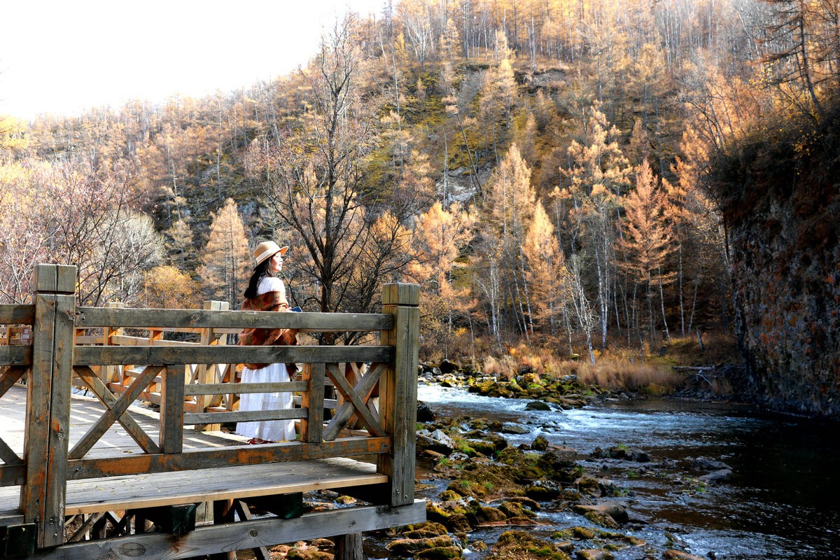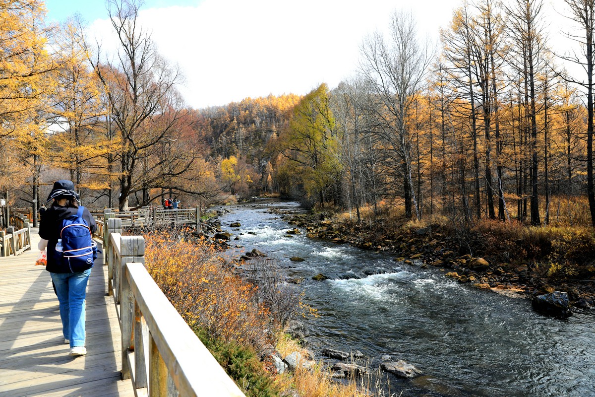 9月29日,游客在內(nèi)蒙古阿爾山國(guó)家森林公園不凍河邊小憩 北疆新聞?dòng)浾?張楊攝影