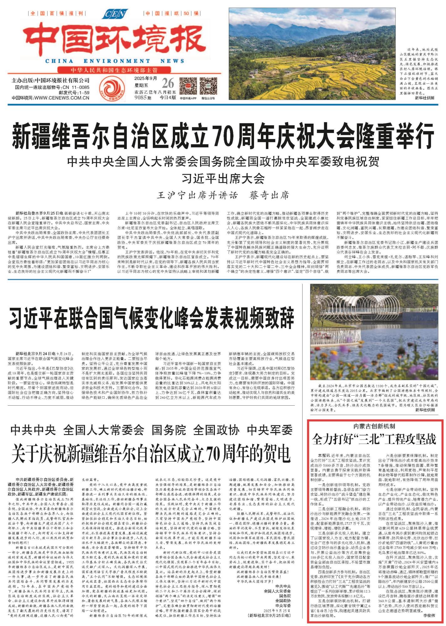 2025年9月26日《中國環(huán)境報(bào)》第1版
