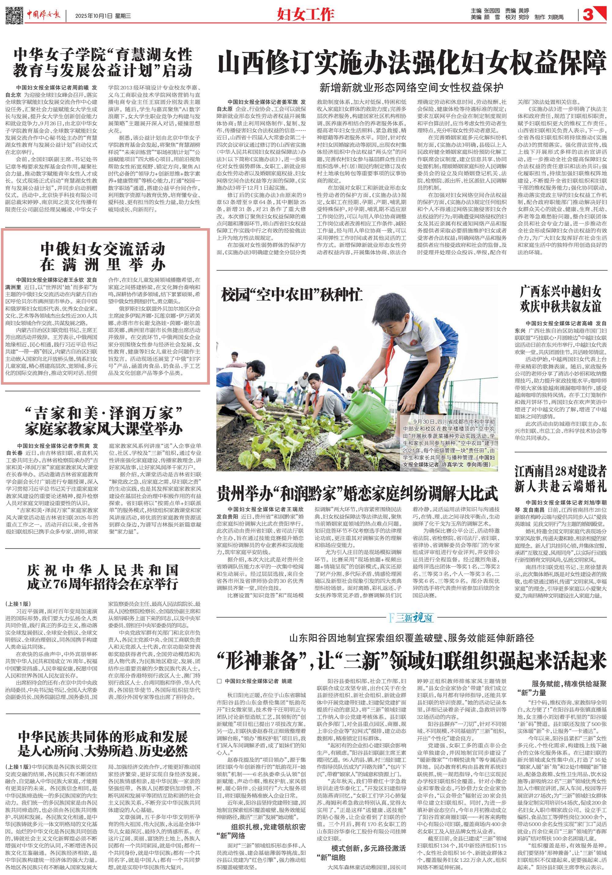 2025年10月1日,《中國婦女報(bào)》第3版刊發(fā)題為《中俄婦女交流活動在滿洲里舉辦》的文章,報(bào)道了中俄婦女交流活動在內(nèi)蒙古自治區(qū)呼倫貝爾市滿洲里市舉辦,來自中國和俄羅斯各領(lǐng)域杰出女性近200人共商婦女領(lǐng)域合作交流、共謀發(fā)展之路。