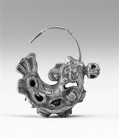 遼代嵌綠松石摩羯魚(yú)金耳墜。 來(lái)源:上海博物館網(wǎng)站