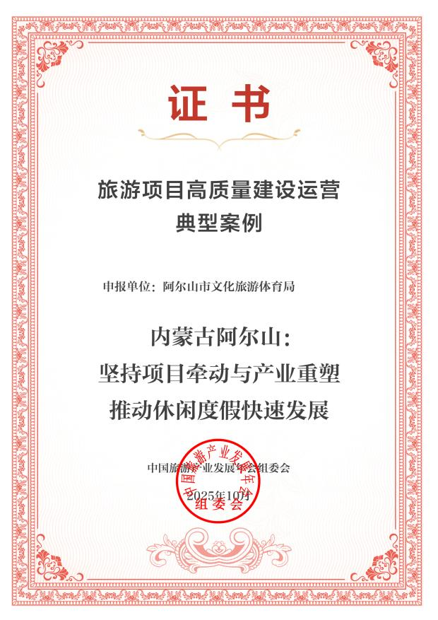 阿爾山市“堅(jiān)持項(xiàng)目牽動(dòng)與產(chǎn)業(yè)重塑推動(dòng)休閑度假快速發(fā)展”案例成功入選2025旅游項(xiàng)目高質(zhì)量建設(shè)運(yùn)營(yíng)典型案例。
