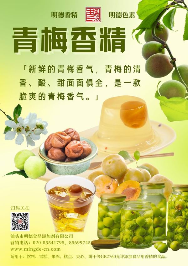 在梅子風(fēng)味香精領(lǐng)域我們數(shù)十年潛心專研,迎合市場需求,滿足消費者喜好,汕頭市明德食品添加劑有限公司,推出了多種款梅子風(fēng)味香精,如:青梅風(fēng)味、酸梅風(fēng)味、話梅風(fēng)味、酸梅湯風(fēng)味等。