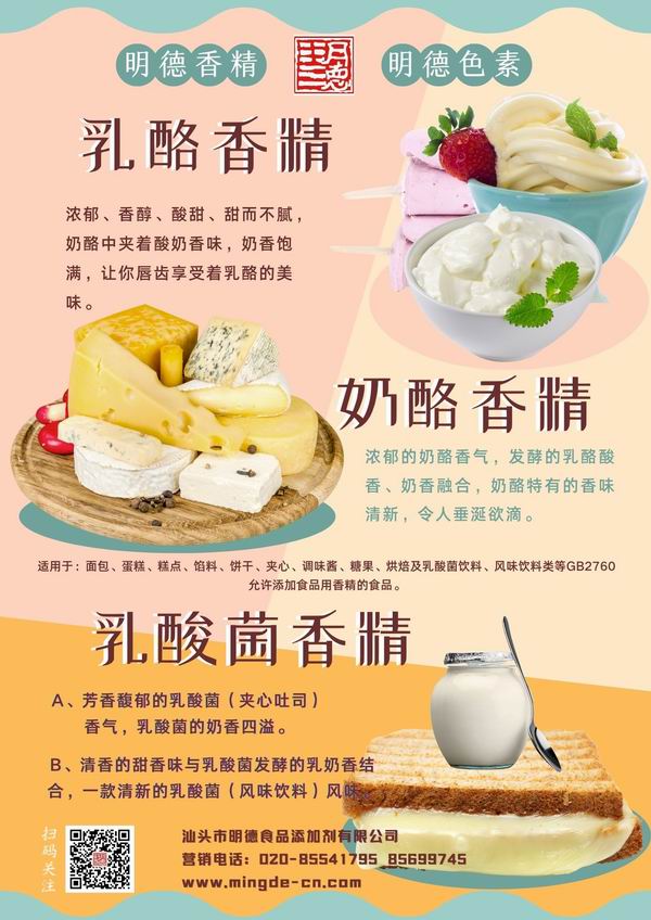 此外,汕頭市明德食品添加劑有限公司在數(shù)十年的研發(fā)中還推出了許多奶香風(fēng)味香精。歡迎廠家們了解嘗試~